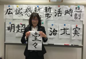 皆今年の漢字を一回勝負で書いていきます(^^)/投票の結果選ばれたのは、課長の大江の「堂々」