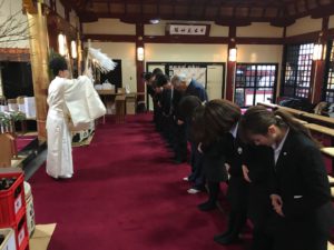 年があけ、会社の一年の繁栄と安全を全員で祈願した後は、毎年恒例の書初め大会‼
